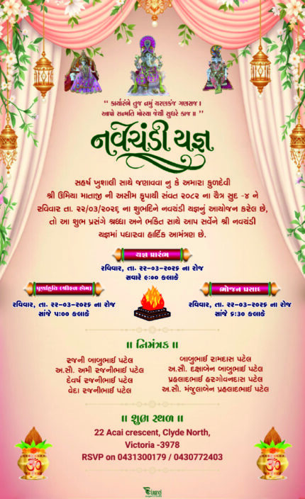 Traditional Navchandi Yagna Invitation Card with Mandap Drapes & Divine Theme NAVCHANDI202405