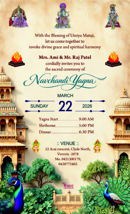 Royal Navchandi Yagna Invitation Card with Temple Architecture & Peacock Theme NAVCHANDI202406