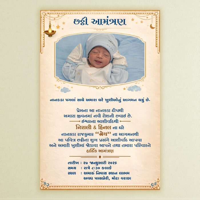 CHHATI202501 Chhathi Ceremony Chhathi Pujan Baby Blessings NewBorn Celebration Chhathi Ceremony Chhathi Pujan Baby Blessings New Born Celebration Indian Tradition Family Function BlessingsForBaby BabyCeremony CulturalRituals Invitation Design Indian Tradition Family Function Blessings For Baby Baby Ceremony Cultural Rituals Invitati on Design