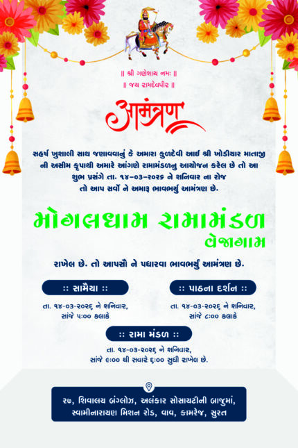 Traditional Ramamandal Invitation Card with Divine Idol & Cultural Theme RAMAMANDAL202601