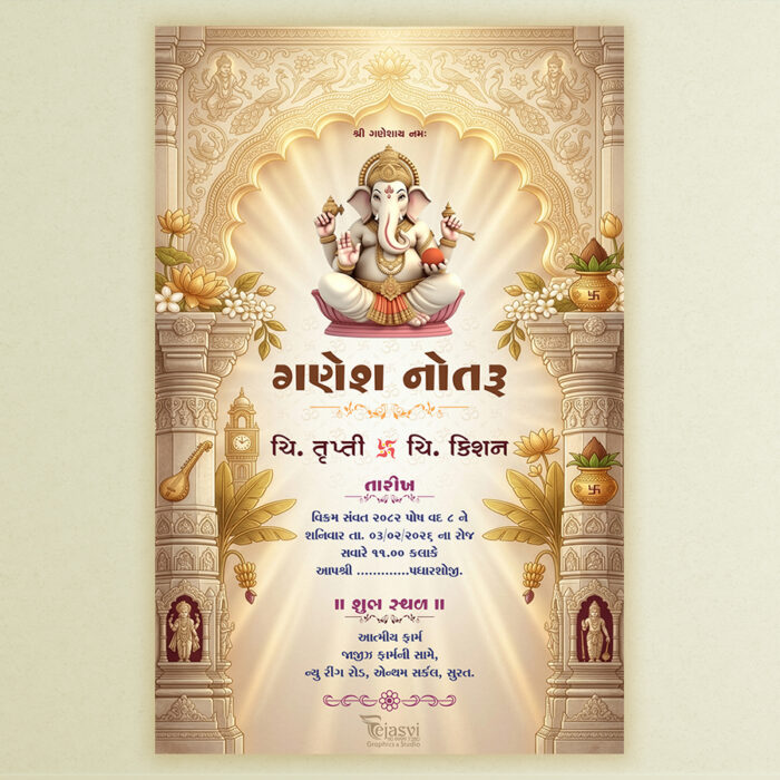 Category: Ganesh Notru Card Tags: #ganeshgujaraticard #ganeshchaturthicard #ganeshpuja #ganpaticard #ganeshinvitation, #GaneshNotaruCardDesign, #GaneshNotruInvitation
