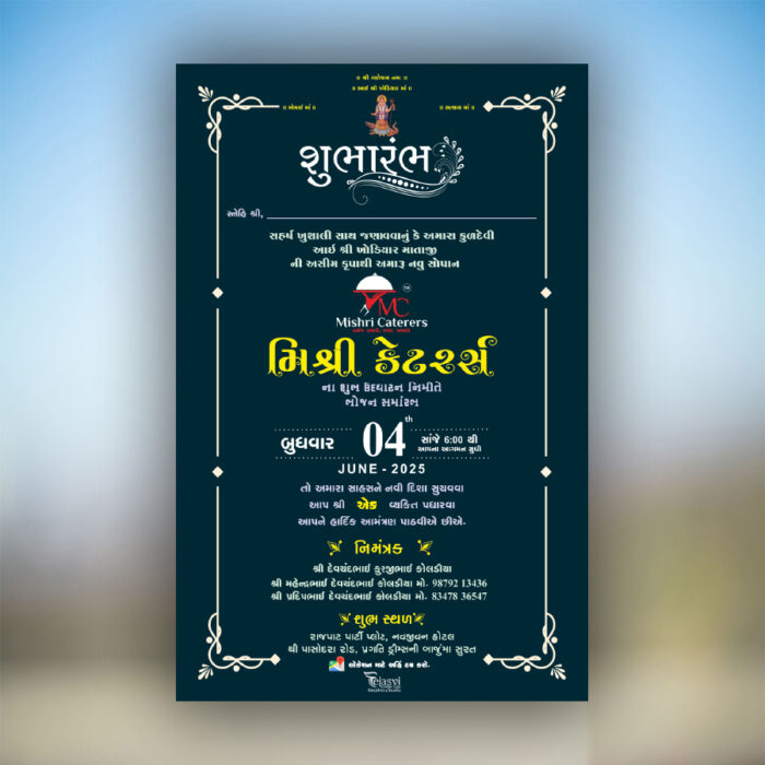 Traditional Black Green color gujrati wedding digital invitation card in Gujrati language design 04