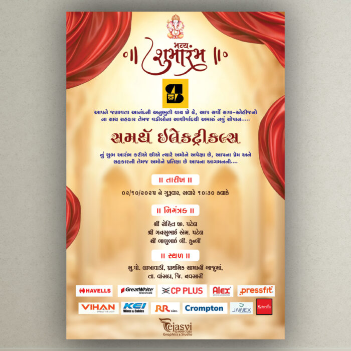 Category: Opening Ceremony Tags: #FestiveVibes, auspiciousstart, brandlaunch, businesslaunch, businesssuccess, carddesignideas, celebratoryvibes, ceremonialvibes, designinspiration, eventdecorideas, eventinvitation, goodvibesonly, grandopening, gujaratibusiness, inaugurationceremony, inaugurationday, indianbusiness, launchmoment, NewBeginnings, newstart, openingcarddesign, openingceremony, openingceremonycard, openingday, ribboncutting, shopopening, specialoccasion, storeopening, successvibes, traditionalopening