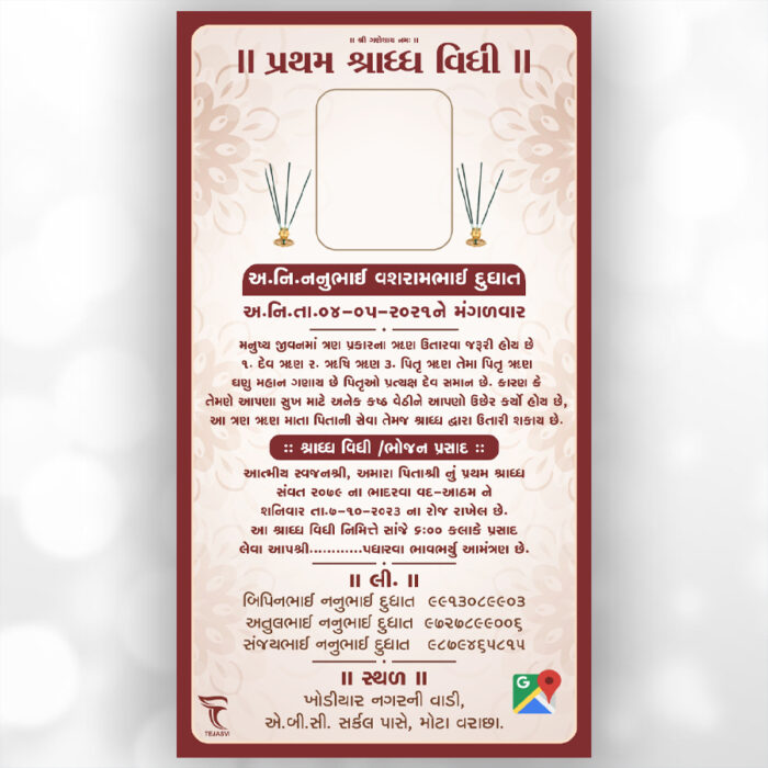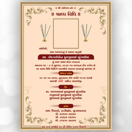 Category: Shrad Card Tag: #ShraddhVidhi #PitruPuja #TarpanVidhi #PeacefulSoul #ShraddhInvitation #SpiritualCeremony #AncestorPuja