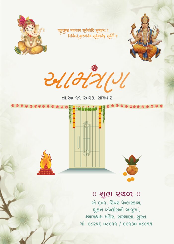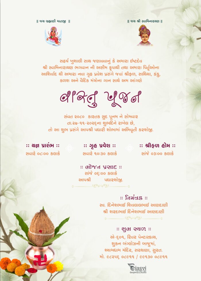 Vastu Pujan Invitation Card VIG2024020 I VastuPujaninvitation Housewarming invitation VastuPoojangujaraticard VastuPujaCard VastuShanti VastuVidhi GrihaPraveshinvitation GruhPravesh NewHome NewBeginning HomeBlessing IndianRituals HinduRituals PujaCeremony SacredRitual PositiveVibes ShubhKarya ShubhMuhurat GaneshPujan KalashPujan BlessedHome
