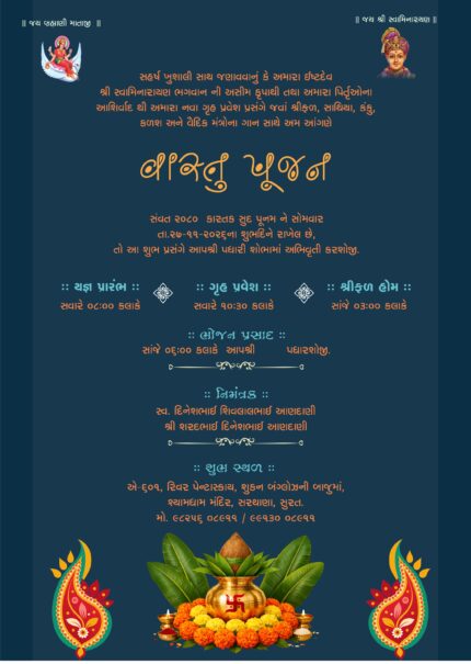 “Vastu Pujan Invitation Card VIG2024020 I VastuPujaninvitation Housewarming invitation VastuPoojangujaraticard VastuPujaCard VastuShanti VastuVidhi GrihaPraveshinvitation GruhPravesh NewHome NewBeginning HomeBlessing IndianRituals HinduRituals PujaCeremony SacredRitual PositiveVibes ShubhKarya ShubhMuhurat GaneshPujan KalashPujan BlessedHome” has been added to your cart. View cart