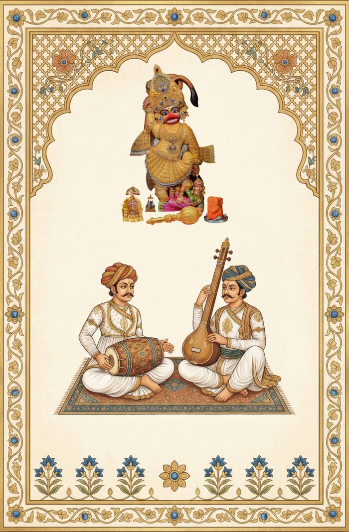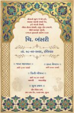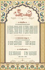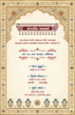 At the top center, there is an illustration of Lord Ganesha along with a sacred Sanskrit shloka, representing blessings and an auspicious beginning. Below it, the words “Shubh Vivah” are written in beautiful artistic calligraphy, serving as the main highlight of the invitation.